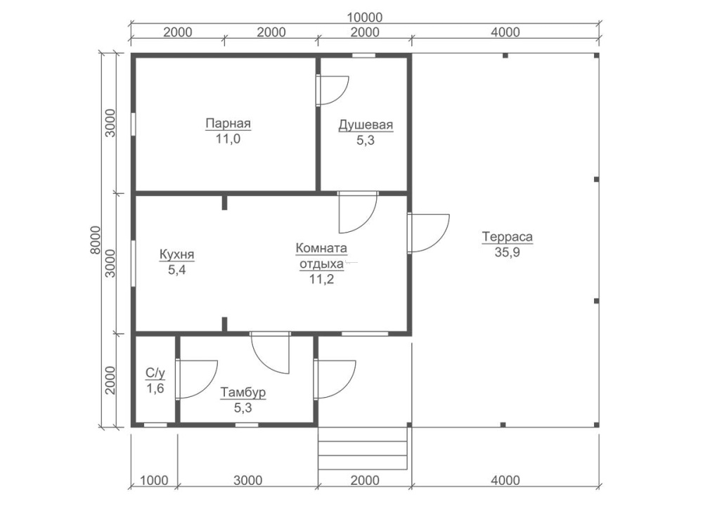 | Двери | Входная- металлическая, утеплённая (Россия). Межкомнатные- филёнчатые. В парную- клиновая (банная). | Отсутствуют. |