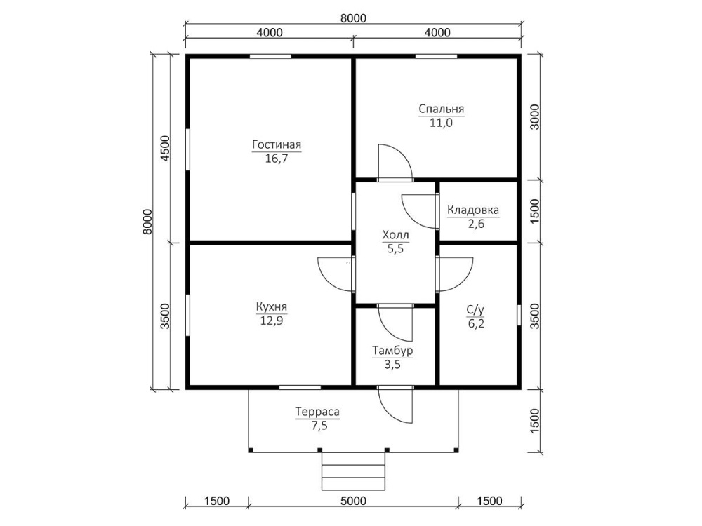 | Под ключ (с отделкой) | 8х8 | Профилированный 190х140 мм | 2180800 | Заказать |