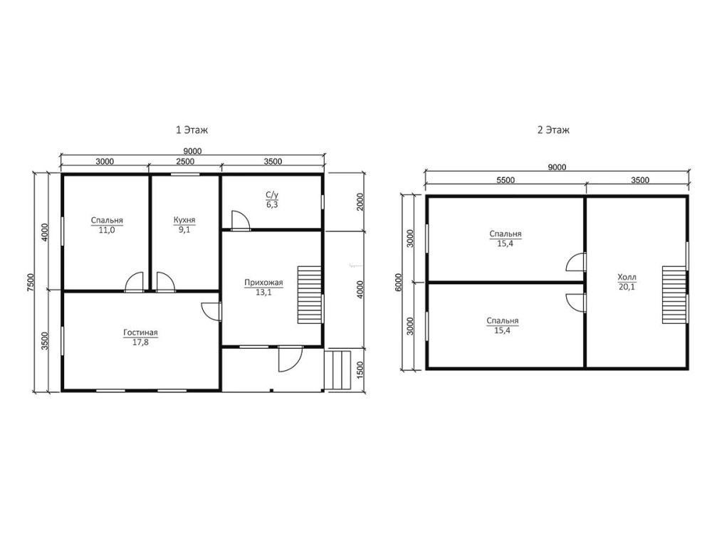Самые востребованные размеры: мини - до 50 м2 (в основном, 1 этажные дома); компактные - от 70 до 100 м2 (обычно двухэтажные); большие - начиная от 150м2 и больше.