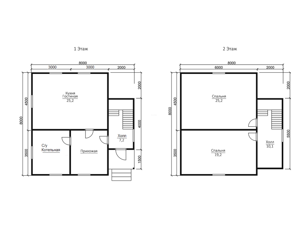 Самые востребованные размеры: мини - до 50 м2 (в основном, 1 этажные дома); компактные - от 70 до 100 м2 (обычно двухэтажные); большие - начиная от 150м2 и больше.