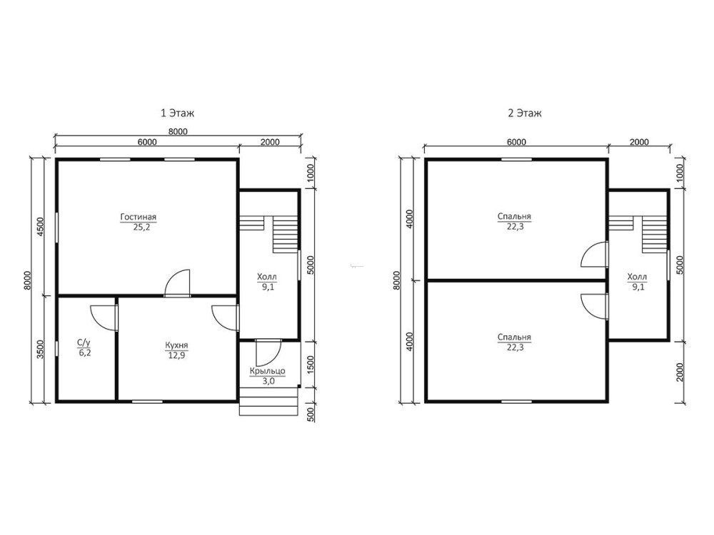 Самые востребованные размеры: мини - до 50 м2 (в основном, 1 этажные дома); компактные - от 70 до 100 м2 (обычно двухэтажные); большие - начиная от 150м2 и больше.